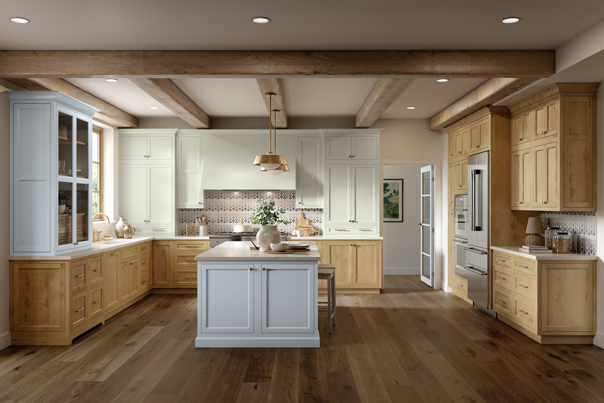 This trend works especially well in homes featuring transitional architecture, common throughout Kansas City, where traditional charm meets modern simplicity. Unlike many wood kitchen cabinets of the past, they’re now layered, dynamic, and full of personality.